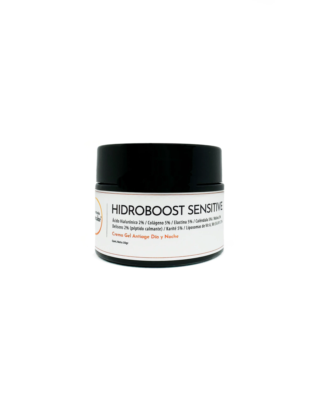 Ácido hialurónico 2% / Colágeno 5% / Elastina 5% / Caléndula 5% Malva 5% / Delisens 2% (péptido calmante) / Karité 5% / Liposomas de Vit A, Vit E & Vit C 2%.
